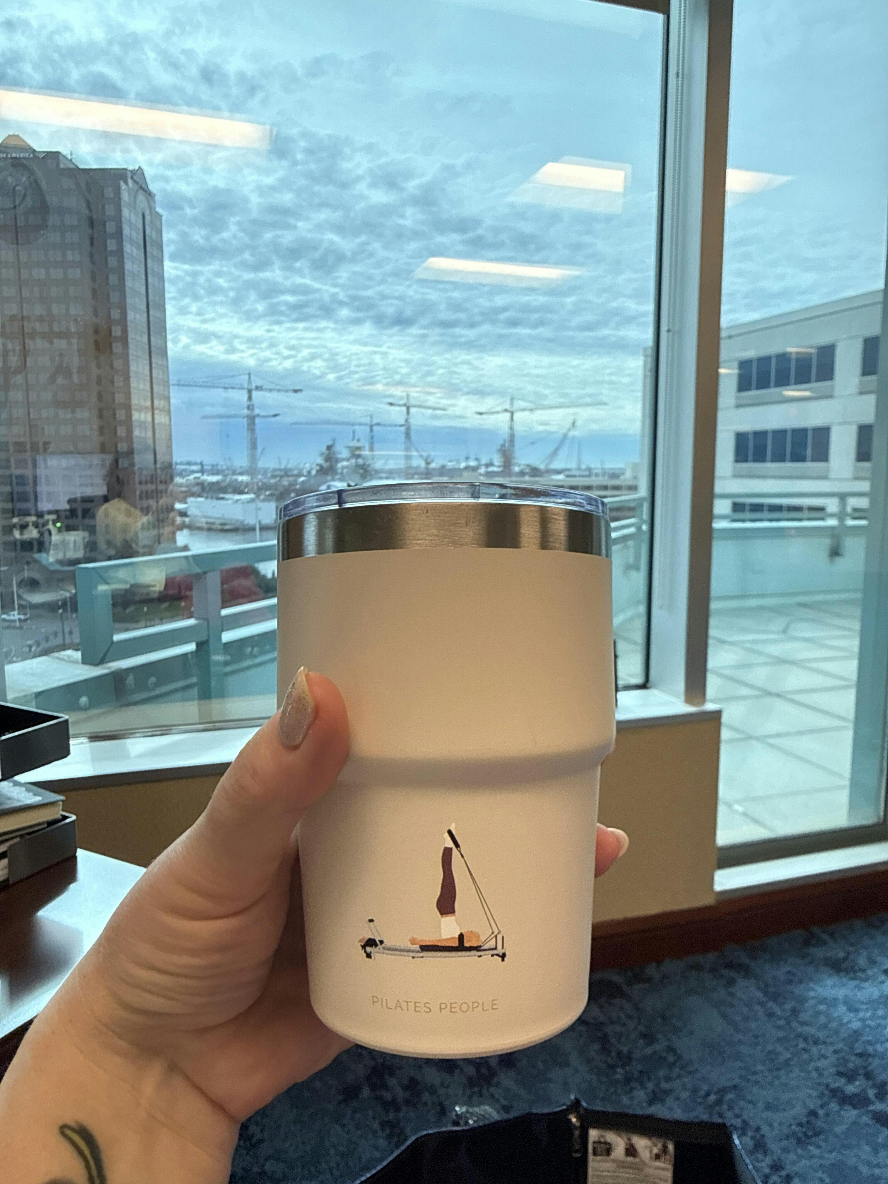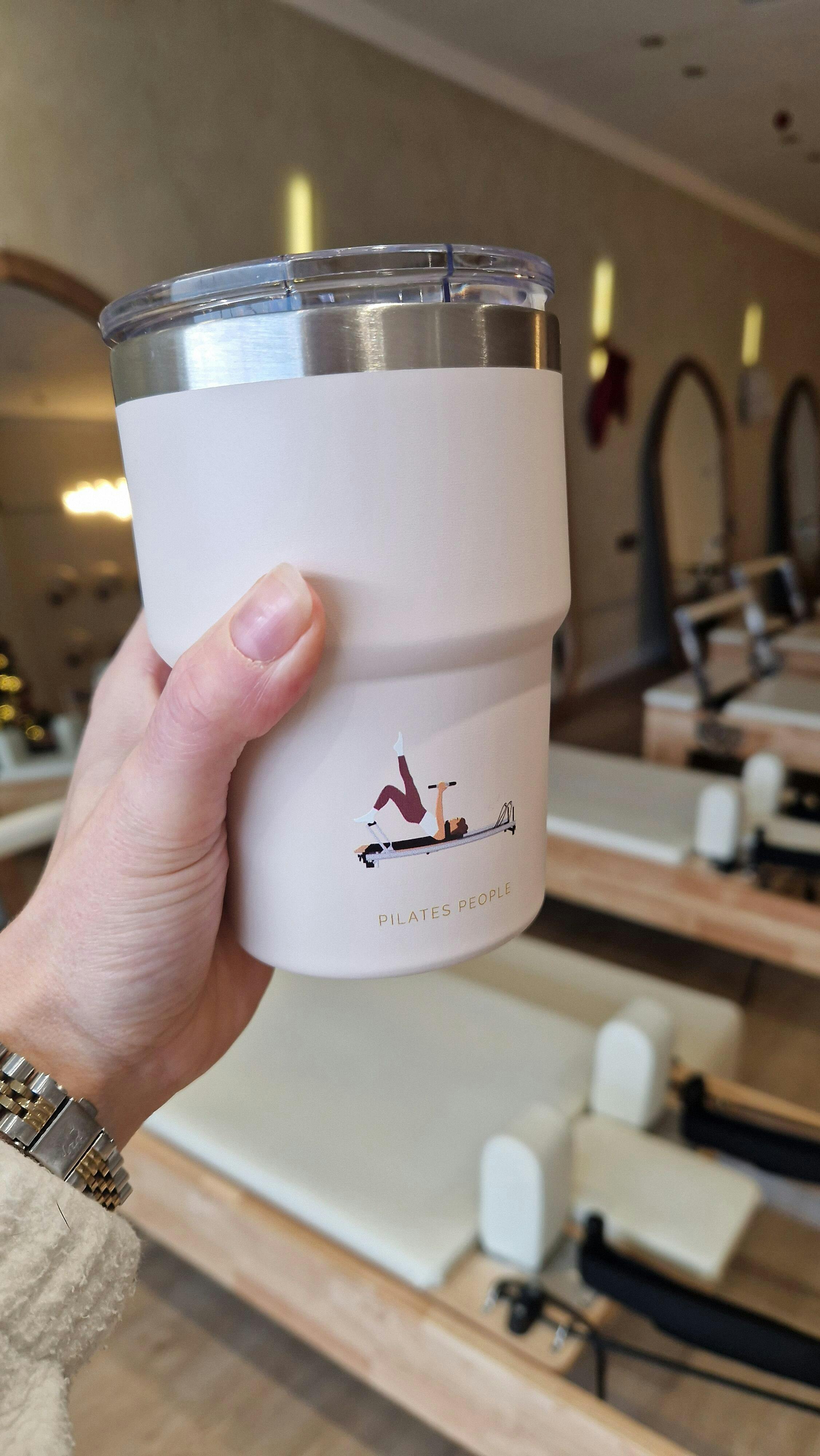 Meet the Pilates People Reusable Cup. Designed to keep up with your flow (and your caffeine habits). Whether it’s a hot matcha before class or an iced latte after, this 16oz stainless steel cup keeps your drink at the perfect temperature.
